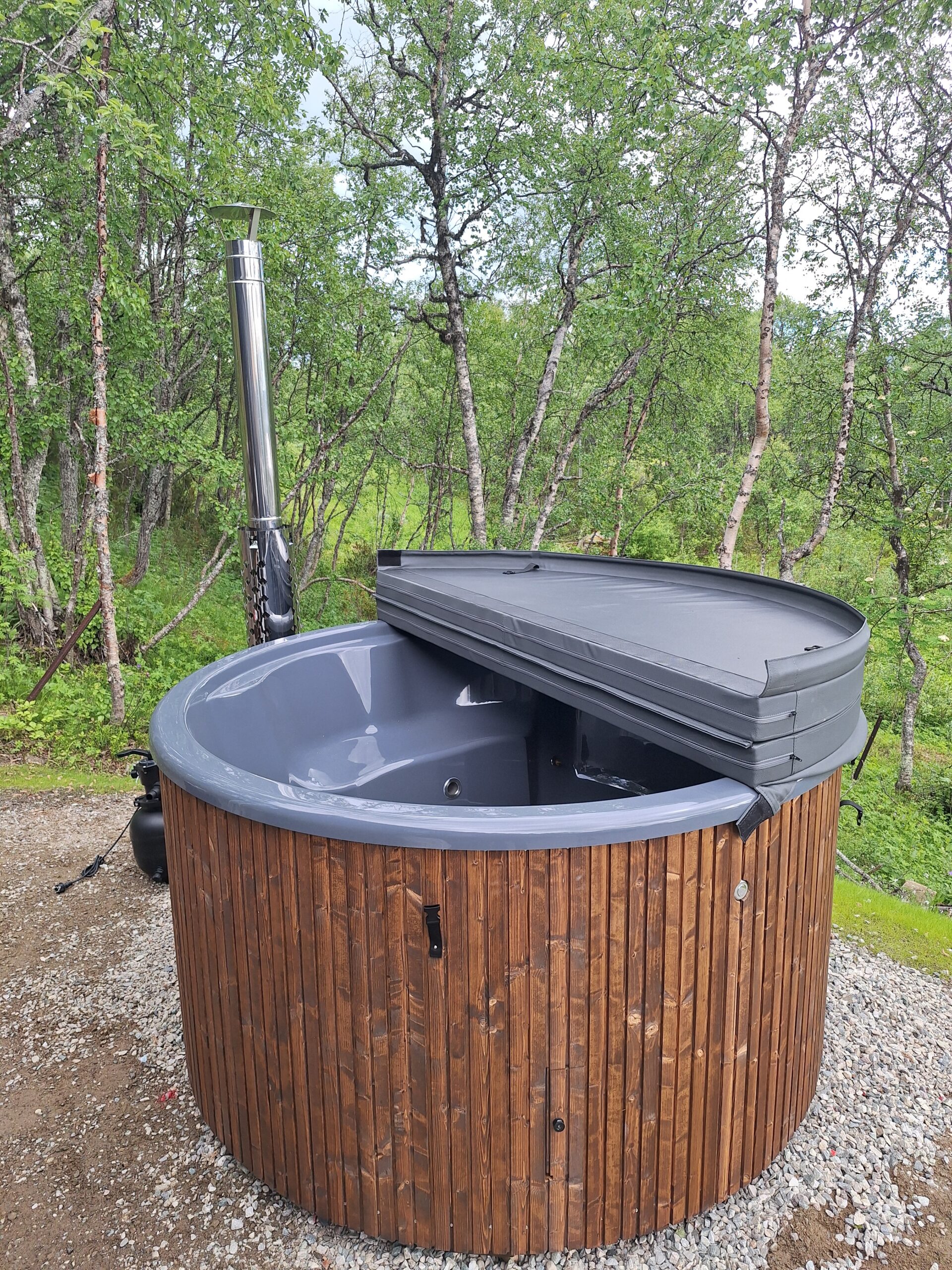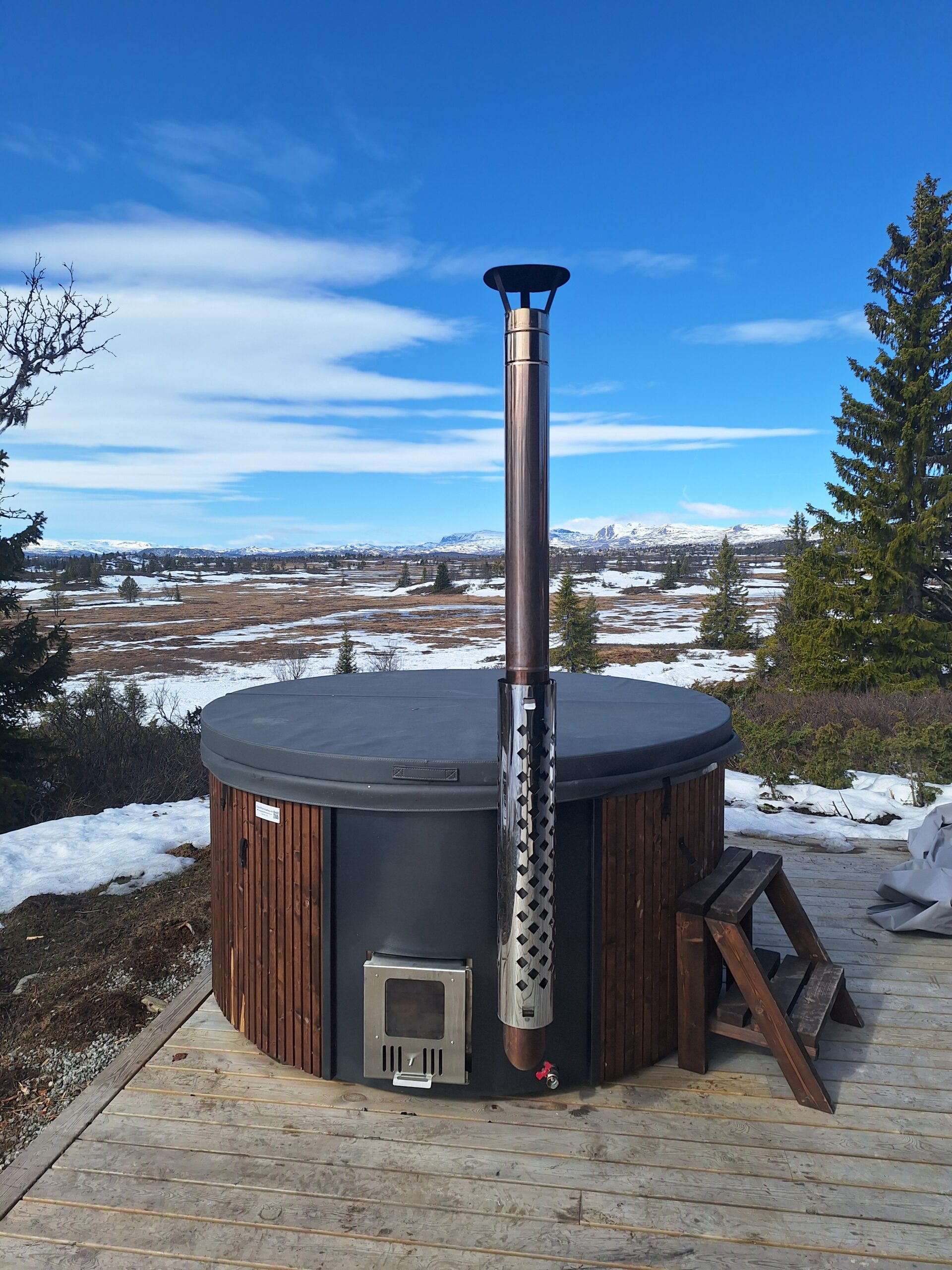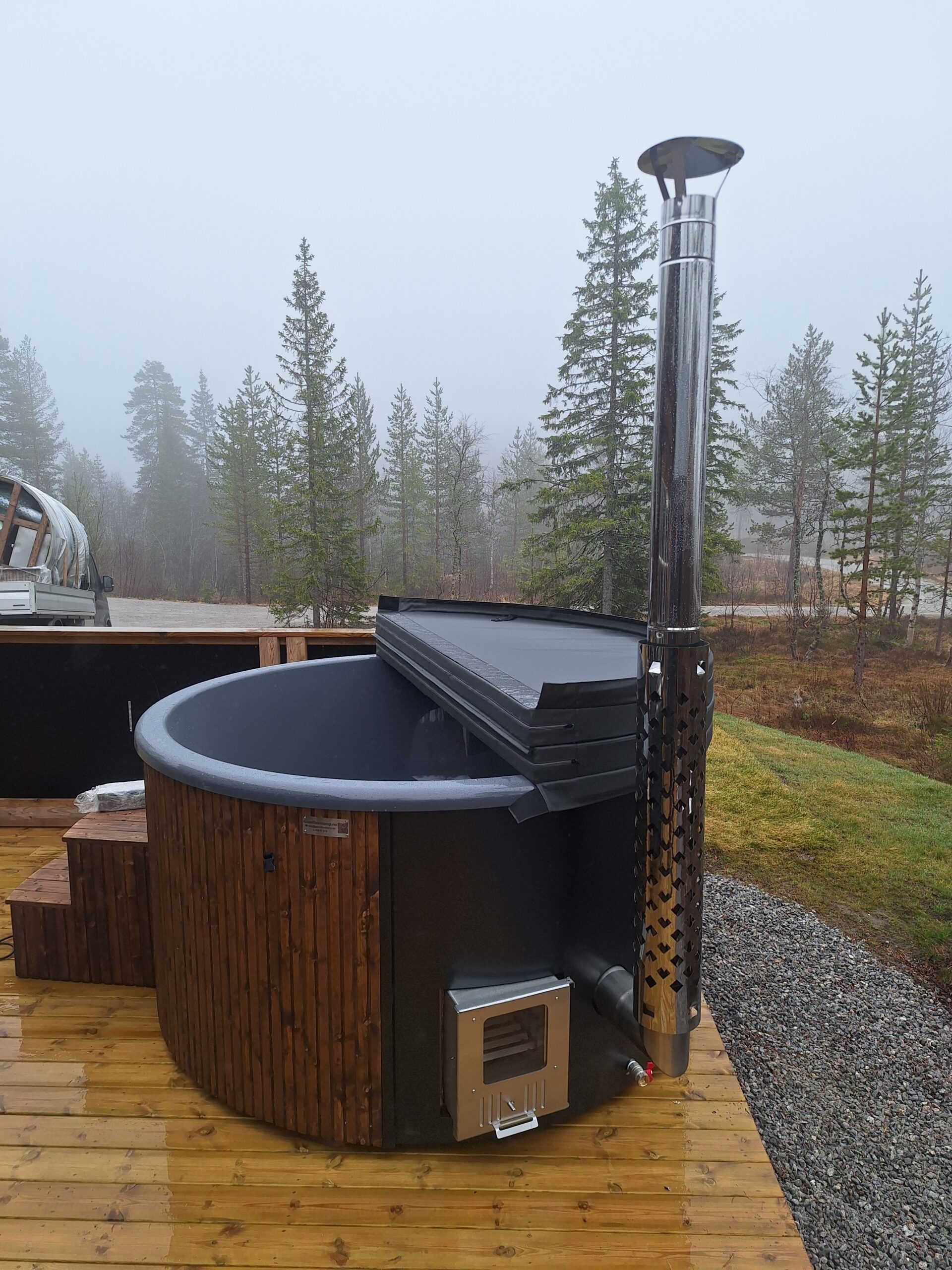 Vedfyrt badestamp i glassfiber med integrert og tilbehør kun kr 35.900,- inkl. mva og gratis frakt opptil 200 km fra Oslo. Henter du selv, får du kr 1000 rabatt.