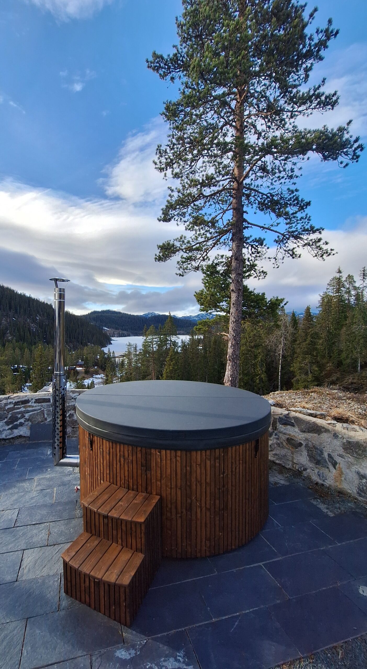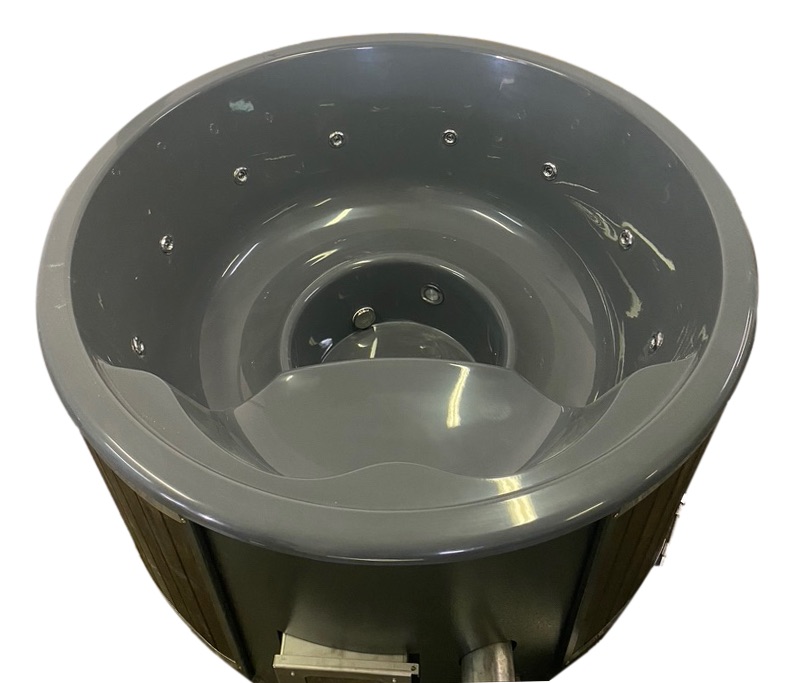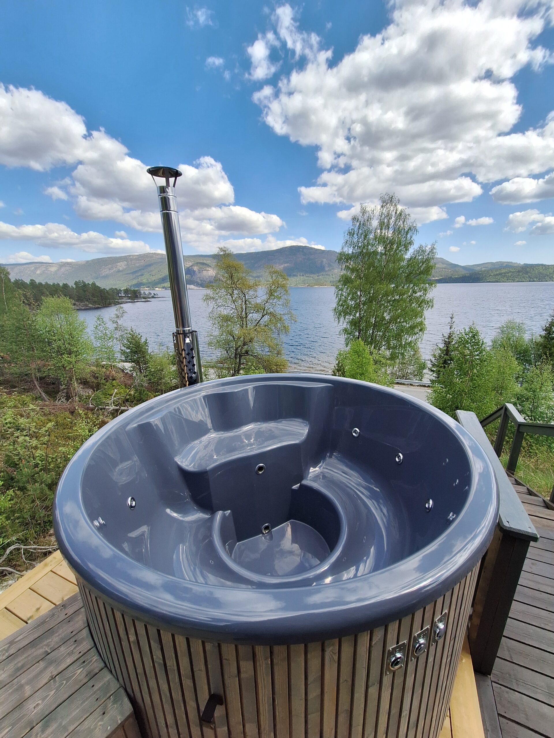 Vedfyrt badestamp i glassfiber med integrert og tilbehør kun kr 35.900,- inkl. mva og gratis frakt opptil 200 km fra Oslo. Henter du selv, får du kr 1000 rabatt.